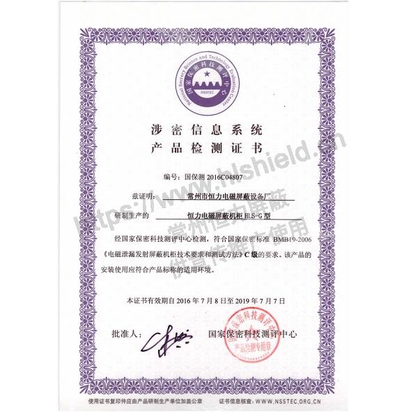 1. 具有國(guó)家保密局BMB19-2006《電磁泄露發(fā)射屏蔽機(jī)柜技術(shù)要求和測(cè)試方法》C級(jí)認(rèn)證的檢測(cè)證書及檢測(cè)報(bào)告。