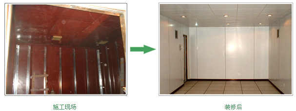 “焊接式屏蔽室屏蔽殼體與內(nèi)部裝修之間的對(duì)比圖例”